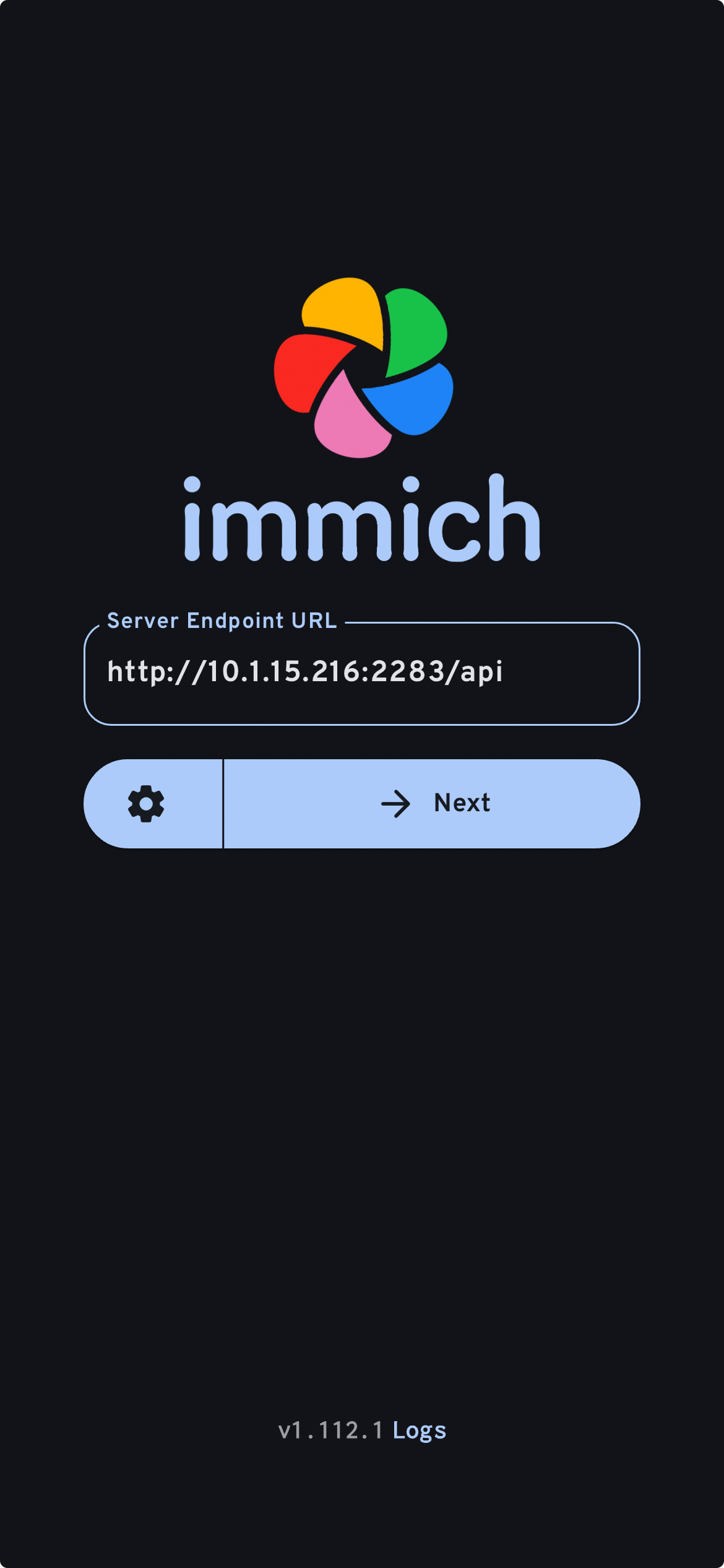 Login to the mobile app with the server endpoint URL at http://<machine-ip-address>:2283/api